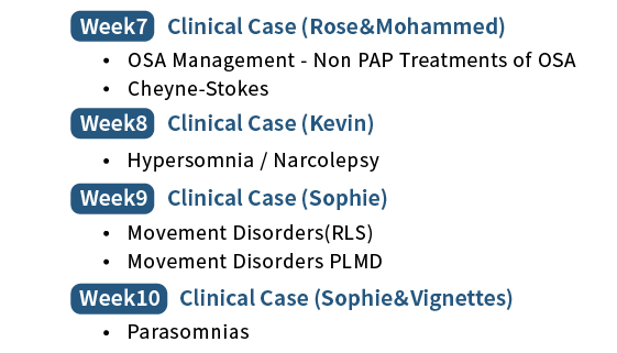 The course is coherently, and in the last few courses and examinations also test the things taught in the front to see if you have a thorough understanding of sleep medicine.